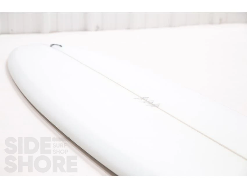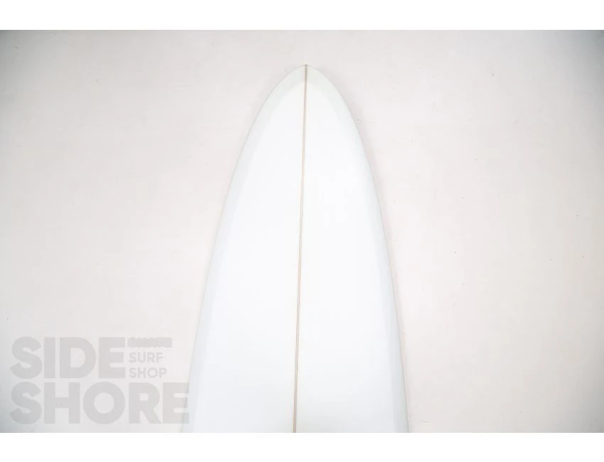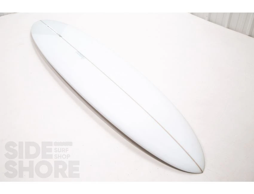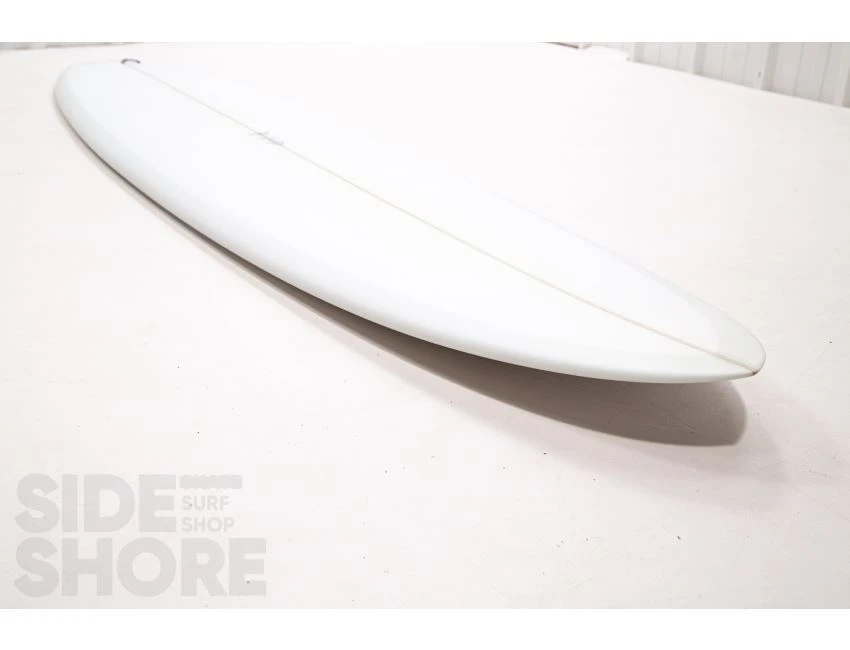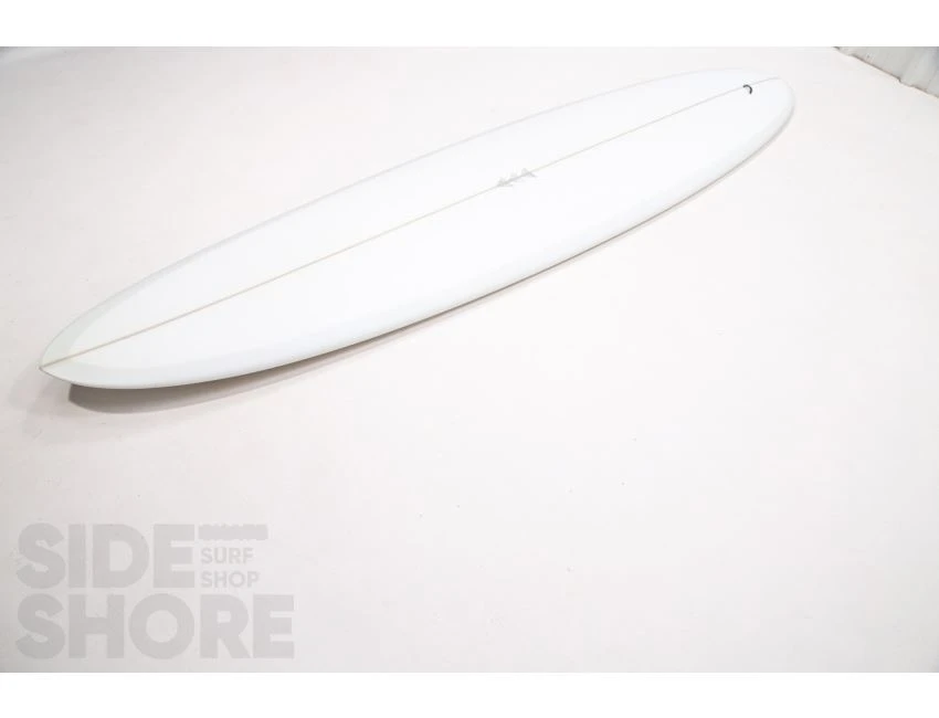 « J’ai conçu cette planche pour être surfée à l’origine sur les front side point breaks, mais j’ai découvert qu’elle était également une planche extrêmement polyvalente sur les beach breaks. Le rocker sur la carène commence par une entrée assez douce dans le nez qui se fond dans un simple concave puis se jette dans un double concave en V. »
